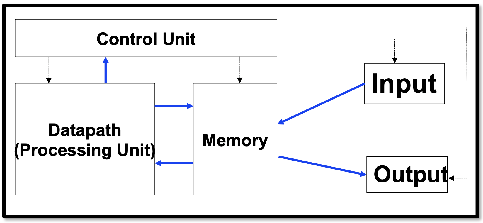 - 산술 논리 장치(Arithmetics/Logic Unit)와 프로세서 레지스터를 포함하는 처리 장치