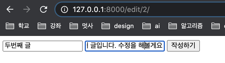 1) app 디렉토리 내의 templates 디렉토리 내에 글을 수정하기 위한 html 파일을 생성