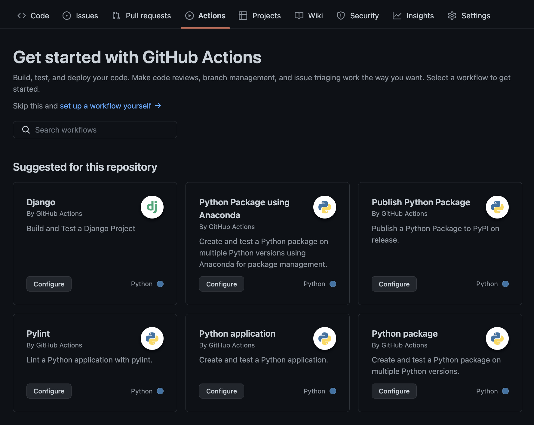 (1) Github Repository에서 Actions 클릭