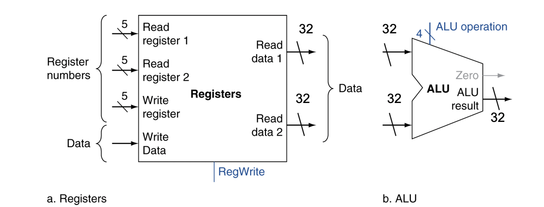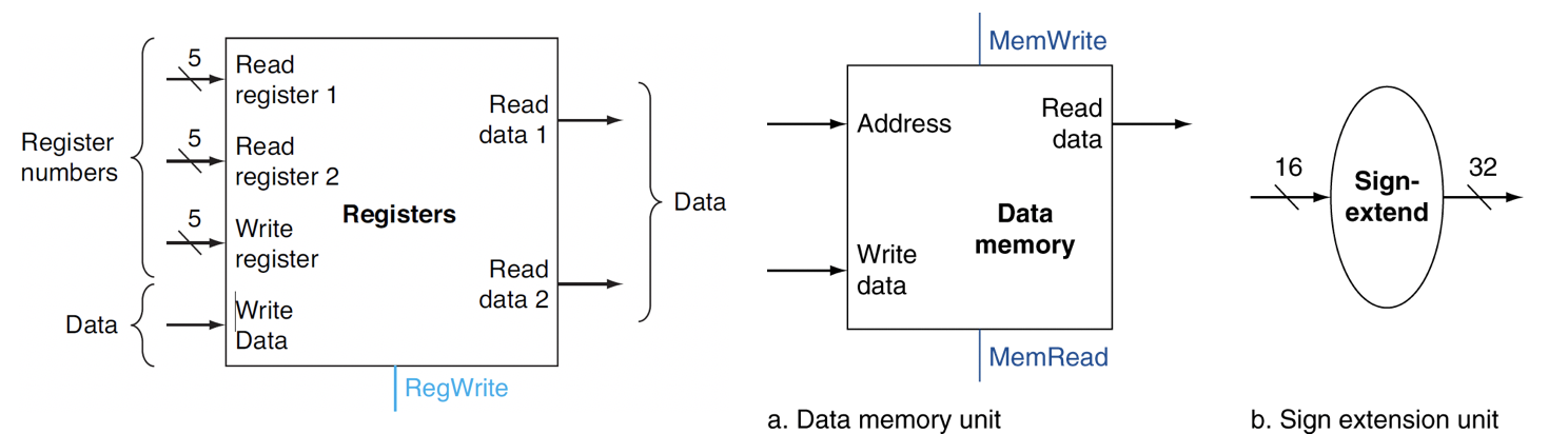 데이터패스란 CPU안에서 데이터와 주소, 레지스터의 처리 및 연산을 하는 모든 요소를 의미한다 (instruction memory, data memory, PC, Register file, ALU 등 ..)