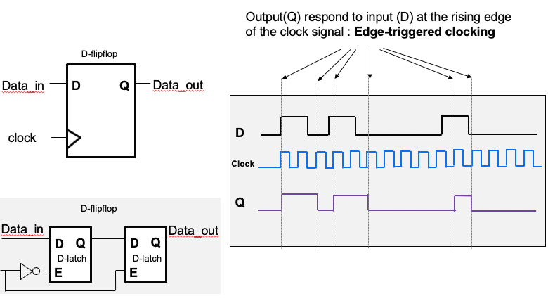 - 따라서 클락 엣지에서 이전 storage element에서 다음 storage element로 데이터를 전달함