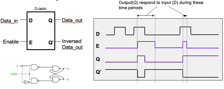 - 저장 요소(storage element)는 latch와 flip-flop이 있음.