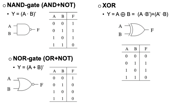 - 하드웨어는 logic gate(AND, OR, NOT, NAND, NOR, XOR..)라는 simple building block으로 구성됨