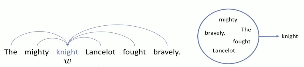 - 주어진 문맥(주변 단어들)으로부터 중심 단어를 예측